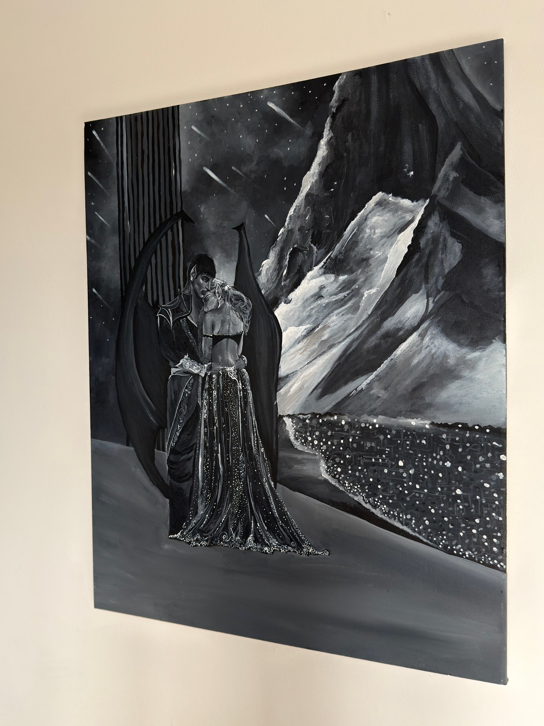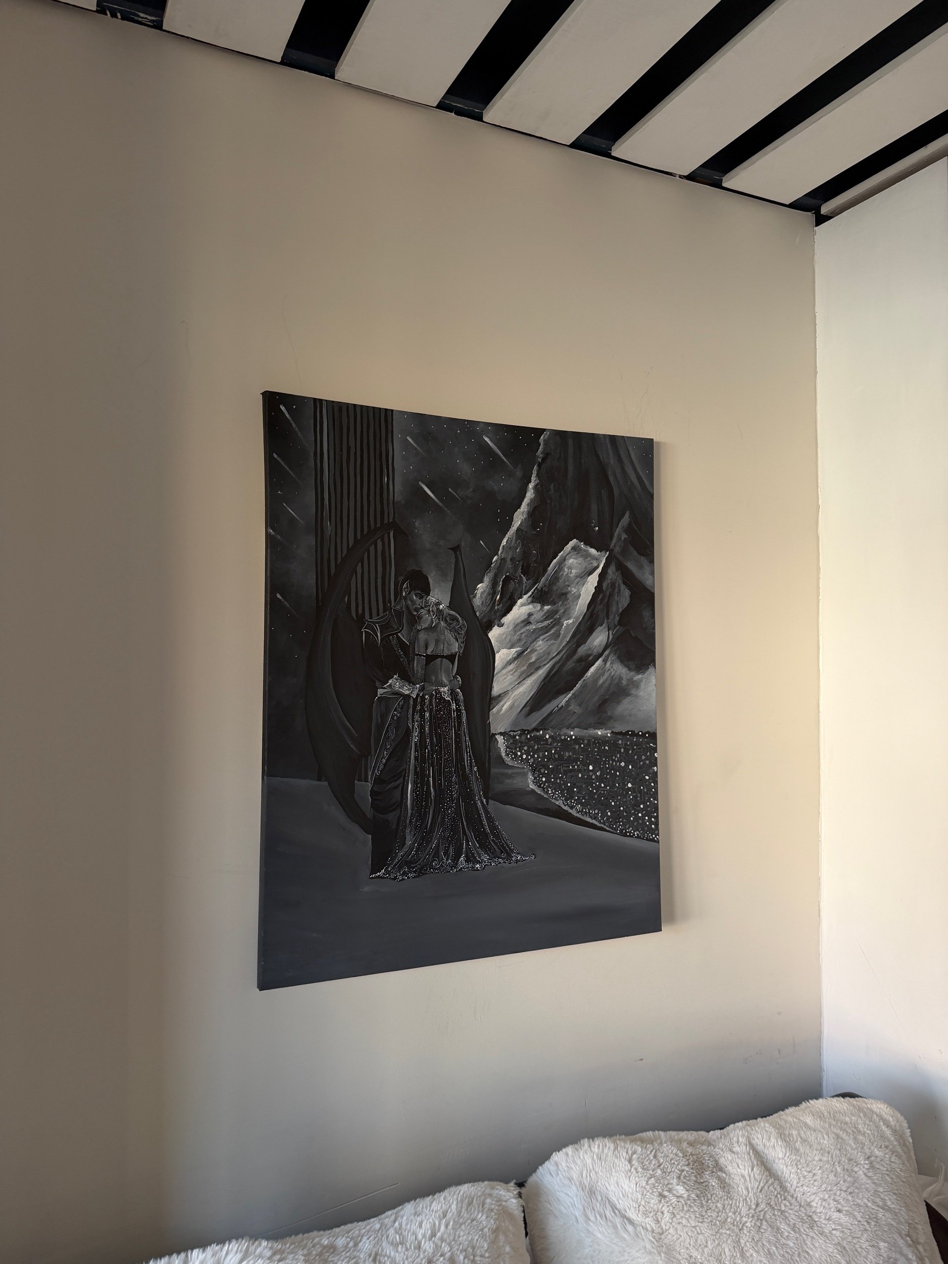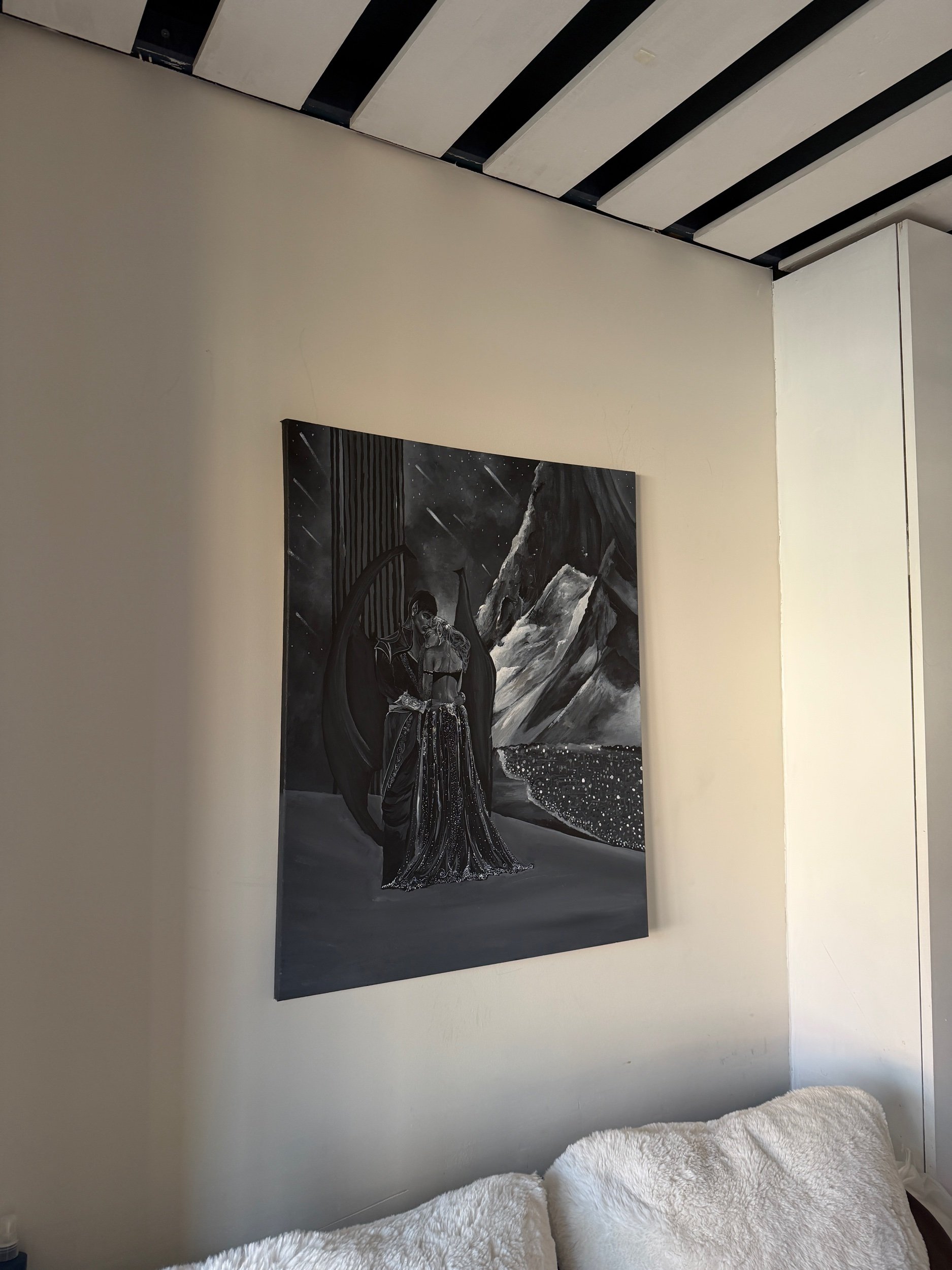 SHOP › Tilted to the stars - Original Image 1 of 5 Image 2 of 5 Image 3 of 5 Image 4 of 5 Image 5 of 5 Tilted to the stars - Original £800.00 For those who have their heads tilted to the stars. Original black and white, acrylic painting on canvas. 24 x 30” 1 of 1. Add To Cart Added! For those who have their heads tilted to the stars. Original black and white, acrylic painting on canvas. 24 x 30” 1 of 1.