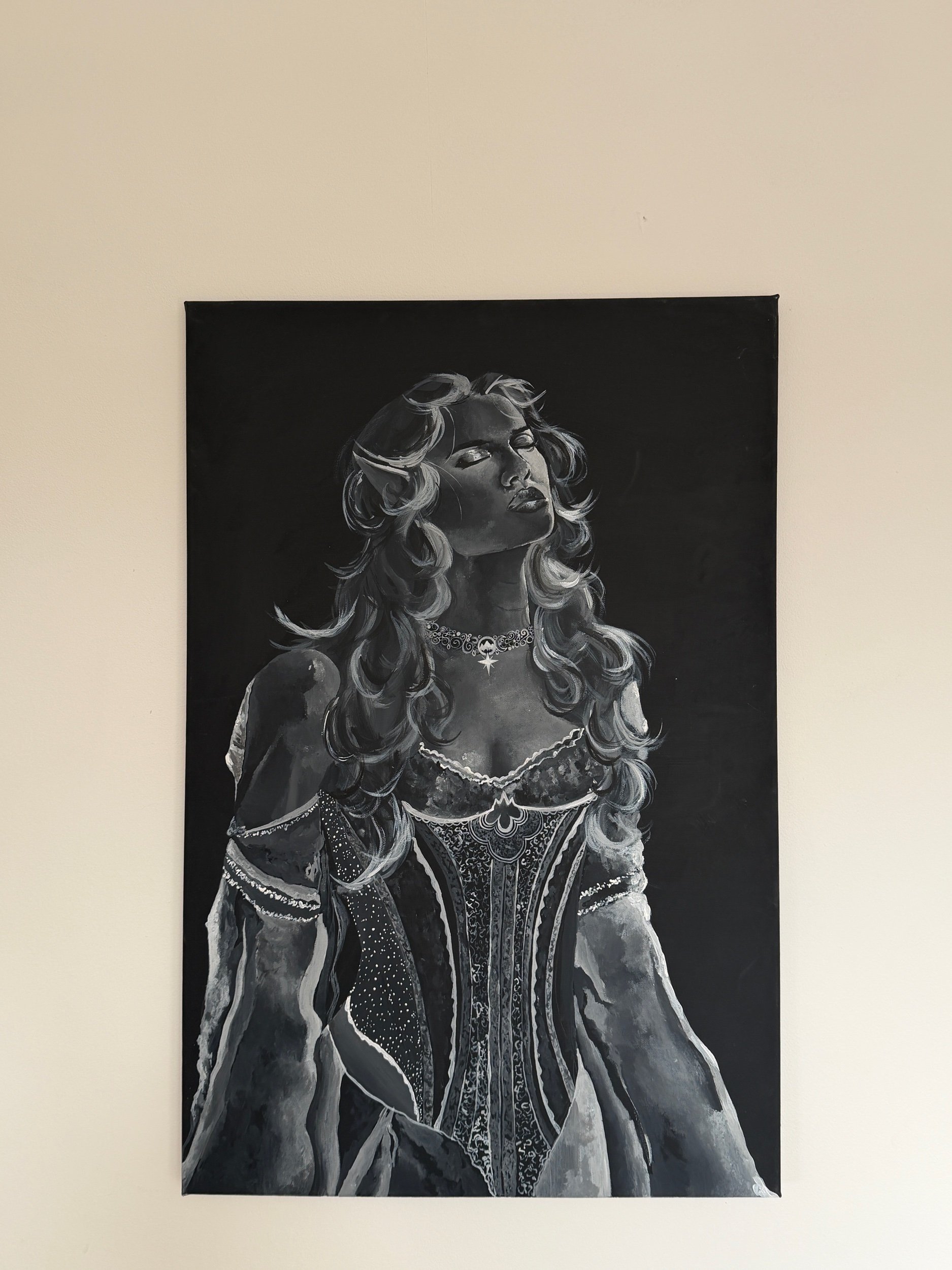 A black and white acrylic painting professionally printed onto archival smooth cotton rag art paper. Each print is carefully produced to preserve texture and tonal depth, designed for longevity on museum quality paper.