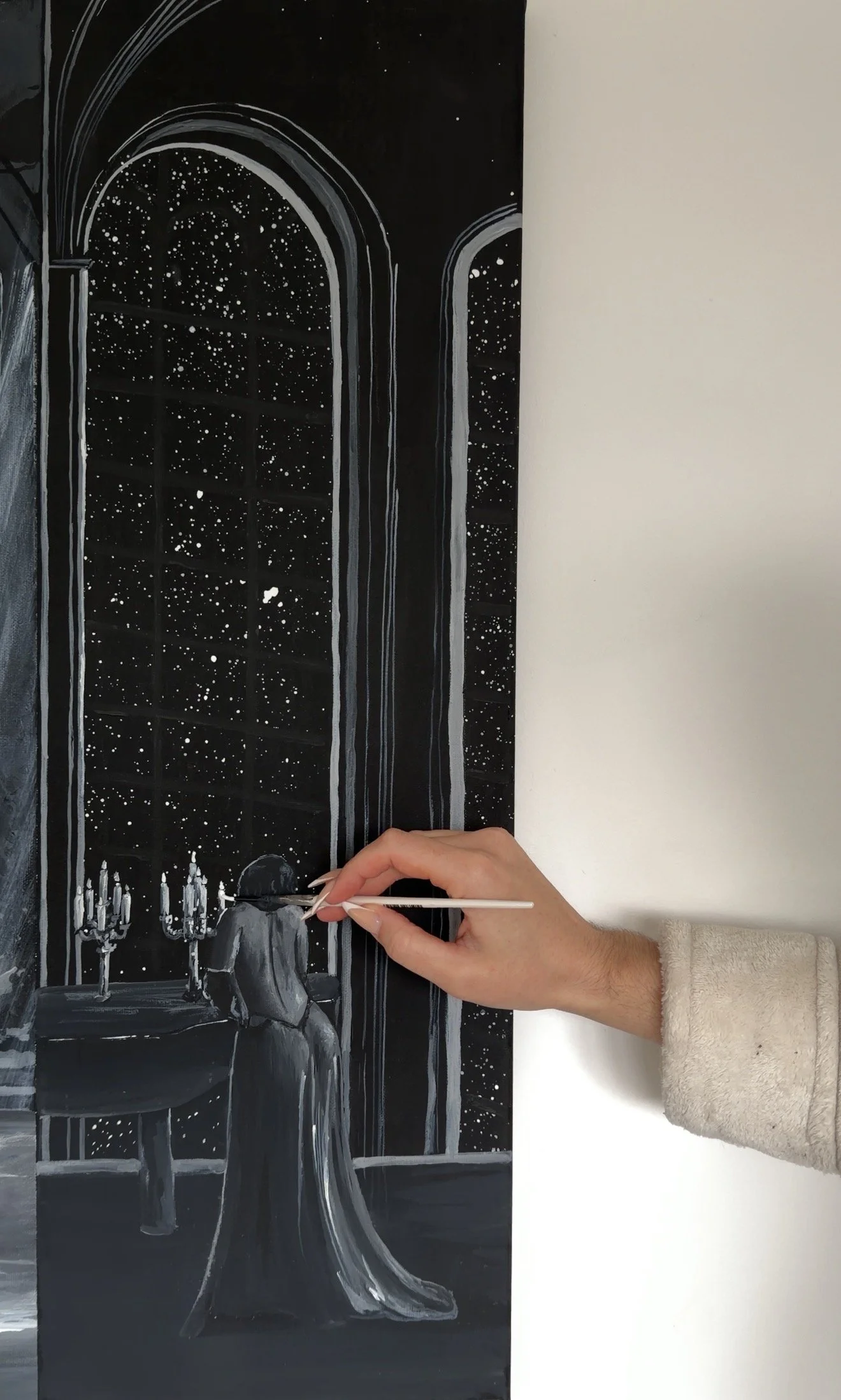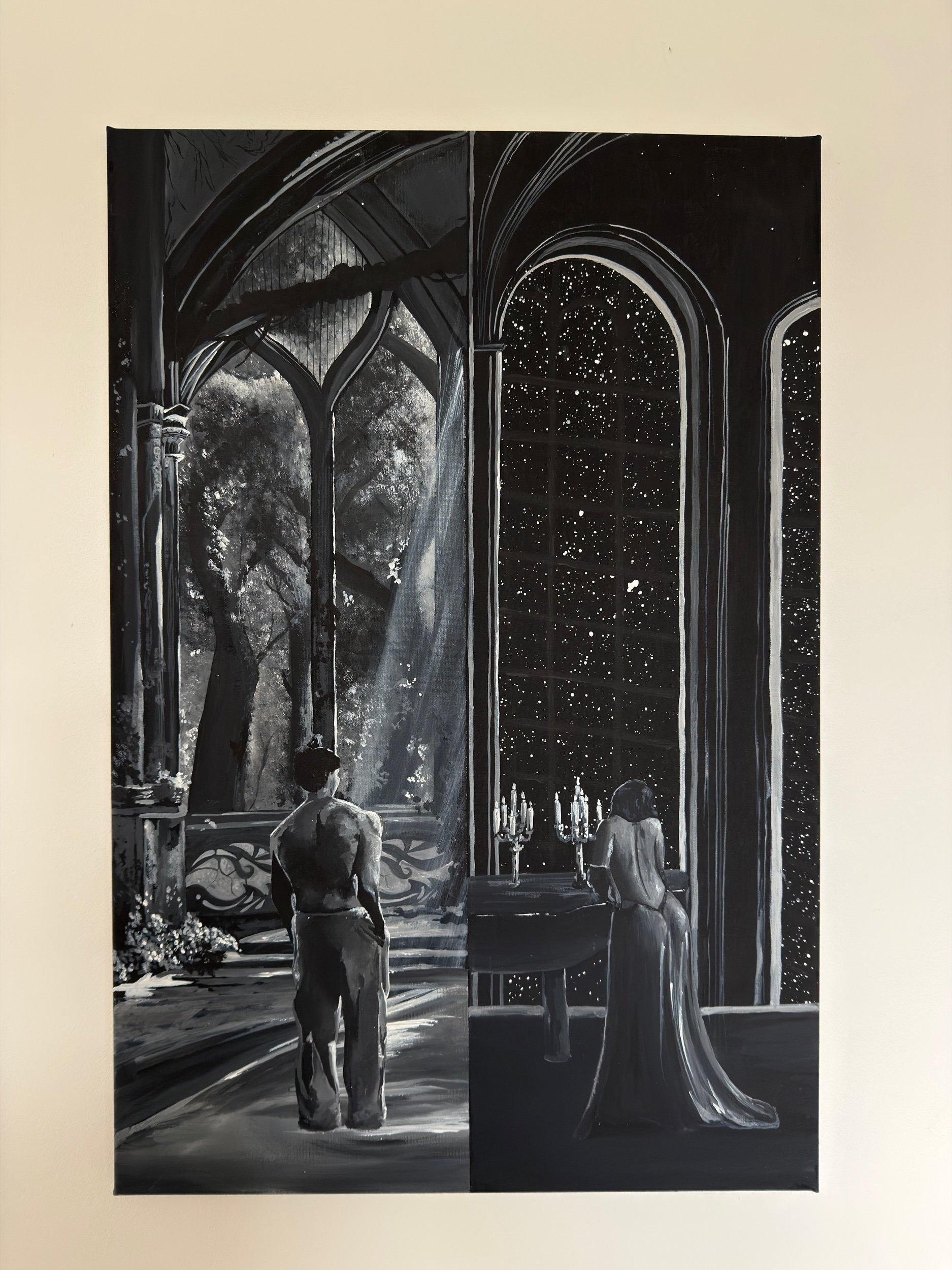 A black and white acrylic painting professionally printed onto archival smooth cotton rag art paper. Each print is carefully produced to preserve texture and tonal depth, designed for longevity on museum quality paper.